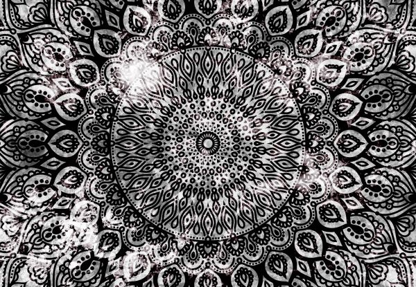 Abstrakcyjna mandala wykonana w technice akwareli. Ze względu na czarno-białe kolory w mandali, można łatwo połączyć tę fototapetę w prawie każdym domu.
