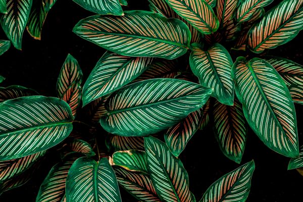 Sfotografowane od góry liście z jasnymi żyłkami.