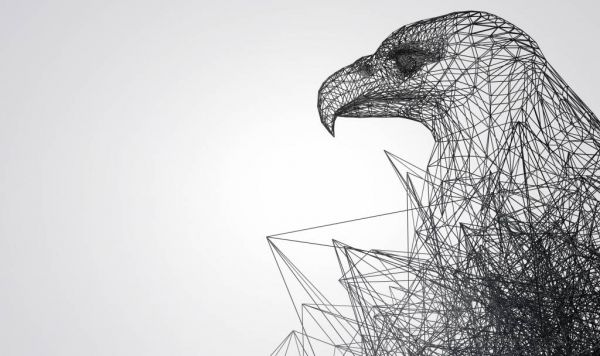 Tapeta z abstrakcyjnym trójkątnym jastrzębiem, utworzonym przez kilka czarnych linii.