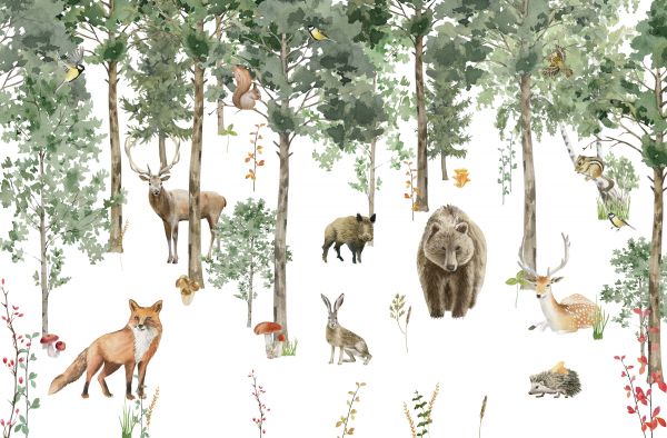 Fototapeta - Akwarelowe zwierzęta leśne