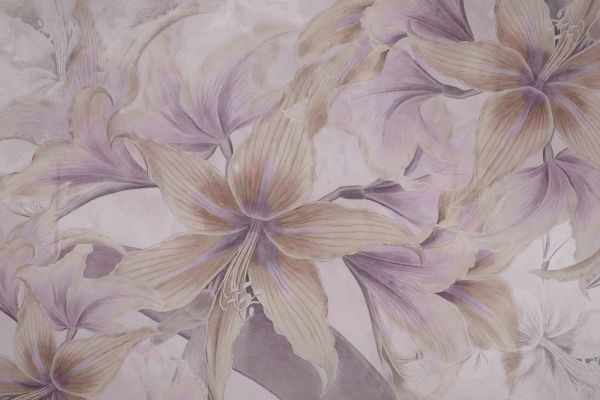 Una refinada mezcla de suaves colores pastel y elegantes motivos florales que evocan una atmósfera serena y de ensueño. Las texturas sutiles y las líneas delicadas enfatizan la belleza natural de las flores, mientras que el acabado artístico proporciona una apariencia atemporal.