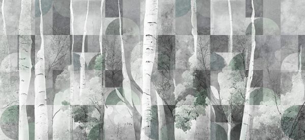 Artystyczny las na fototapecie w czerni i bieli oraz w akwarelowej zieleni.