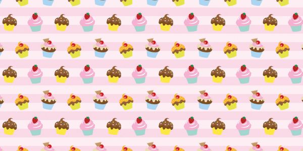 Fototapeta z różnymi rodzajami babeczek na różowym tle w paski.