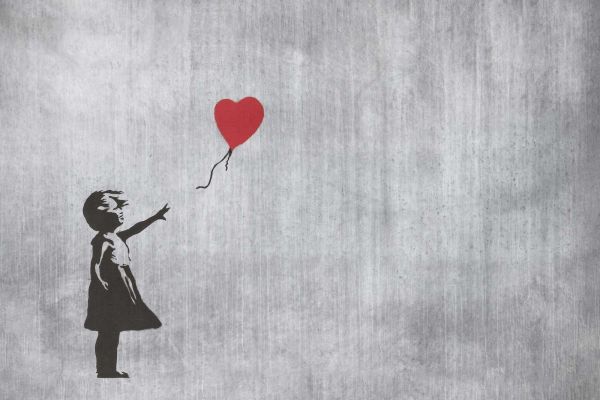 Banksy - Balloon girl, grey concrete...