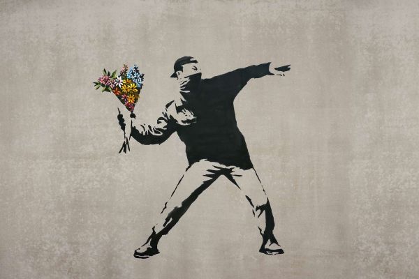 Fototapeta - Banksy - Flower thrower, soft concrete