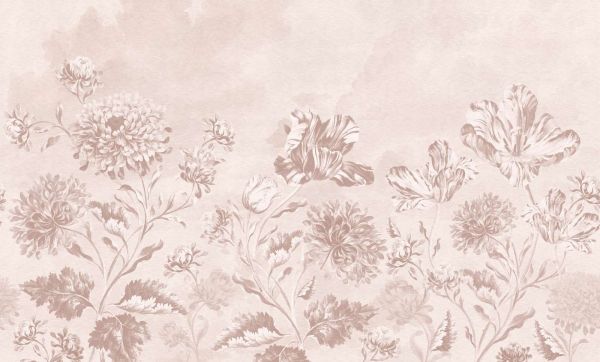 Barokowy pejzaż kwiatowy - pudrowy róż