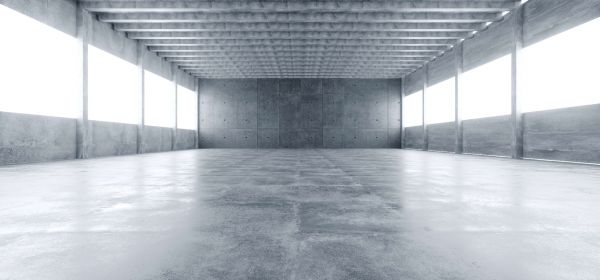 Pusty betonowy magazyn z dużą ilością światła.