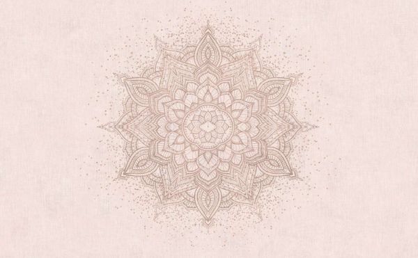 Wyrafinowana gra linii mandali w delikatnych odcieniach piasku, oprawiona subtelnie kropkami, które tworzą pudrową, niemal magiczną atmosferę. Symetryczne detale tworzą uspokajającą i harmonijną całość na tle jasnoróżowego.
