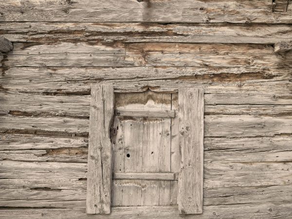 Beżowe półki z drzwiczkami. Ta fototapeta w pokoju sprawia wrażenie, jakby można było przejść przez drewniane drzwi.