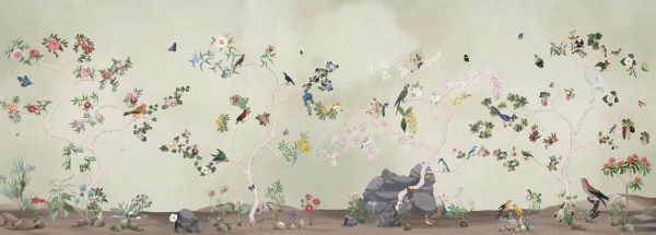 Este diseño da vida a una atmósfera encantadora, en la que la flora y la fauna se combinan magistralmente. Colores sutiles y finos detalles forman un paisaje armonioso que irradia la serenidad de la naturaleza. Flores florecientes, pájaros que vuelan elegantemente y hermosas mariposas crean una escena animada que irradia dinamismo y tranquilidad. Los suaves tonos pastel y las formas orgánicas encajan perfectamente en varios estilos de interior, desde un ambiente escandinavo moderno hasta un ambiente clásico o romántico.