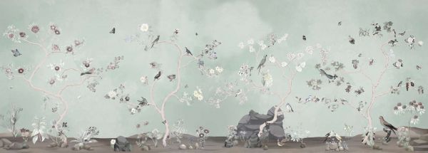 Este diseño da vida a una atmósfera encantadora, en la que la flora y la fauna se combinan magistralmente. Colores sutiles y finos detalles forman un paisaje armonioso que irradia la serenidad de la naturaleza. Flores florecientes, pájaros que vuelan elegantemente y hermosas mariposas crean una escena animada que irradia dinamismo y tranquilidad. Los suaves tonos pastel y las formas orgánicas encajan perfectamente en varios estilos de interior, desde un ambiente escandinavo moderno hasta un ambiente clásico o romántico.