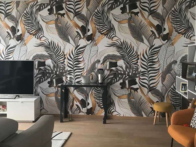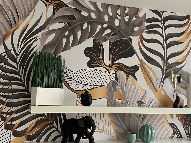 Wyobraź sobie siebie w zielonej oazie z tapetą tropikalnej dżungli. Ty decydujesz, jak bardzo chcesz, aby tapeta wyskakiwała ze ściany dzięki szerokiemu wyborowi odcieni zieleni. Świeże, miękkie kolory sprawiają, że pokój wygląda na bardziej przestronny, podczas gdy twarde, ciemne kolory sprawiają, że pokój wygląda na mniejszy i cieplejszy. Nadruki dżungli są również często używane do nadania małym ścianom dodatkowej uwagi. Dzięki fototapecie z liśćmi dżungli masz wzór, za pomocą którego możesz dodać atmosferę dżungli zarówno do małych, jak i większych ścian.