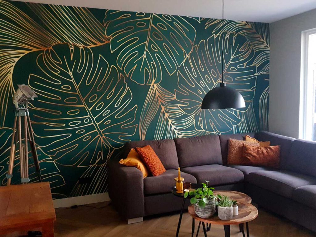 Wybierając odważne kolory lub imponujące obrazy, można stworzyć w salonie prawdziwy element przyciągający wzrok. Prawdziwym trendem, jeśli chodzi o kolory, są tapety ze złotymi detalami. Dodając złoty kolor do ściany, nadasz swojemu pokojowi bardziej luksusowy wygląd. Kolor ten można łączyć z prawie wszystkimi kolorami, więc możesz sam wybrać swój podstawowy kolor. Czy wolisz jasne kolory, czy spokojny wzór? Dodając złote linie lub elementy, nadasz tapecie dodatkowej klasy.