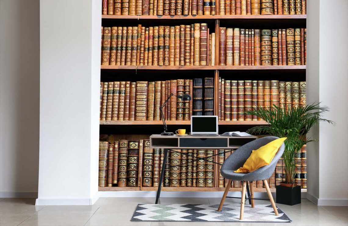 Dzięki tapecie bibliotecznej wykonanej ze starych książek natychmiast nadasz pomieszczeniu dużo atmosfery. Ciepłe kolory tworzą poczucie bezpieczeństwa. Idealne do przytulnego salonu lub przestrzeni, w której lubisz się wycofywać. Na przykład do gabinetu, biura lub kącika czytelniczego. Również zabawa: stwórz własną tapetę biblioteczną ze zdjęcia, które sam zrobiłeś. Na przykład z Biblioteki Publicznej w Nowym Jorku lub słynnej na całym świecie Livraria Lello w Porto.