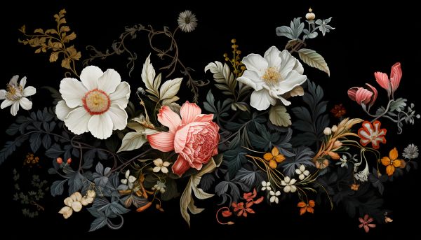 A modern twist on the botanic illustration style. A swirl of flowers to bring magic in your room…