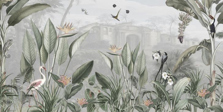 This panoramic image is wide enough to create different wallpaper sections. You can choose your favorite part of the design and have it printed as a custom wall mural—perfect if you're looking for a specific composition or want to highlight a certain detail. Below are two examples of possible cropped sections.