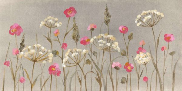 To projekt uchwycił istotę letniej łąki kwiatowej, z łagodnymi makami w jaskrawych odcieniach różu i czerwieni, przeplatanych białymi baldachimowymi kwiatami i podłużnymi kłosami. Ciepłe szare tło stanowi uspokajającą bazę, pozwalając kwiatom subtelnie się wyróżnić, nie dominując. Malarski styl pędzla nadaje delikatny, niemal akwarelowy wygląd, wprowadzając ruch i lekkość w projekt. W wiejskim lub skandynawskim wnętrzu ten projekt prezentuje się pięknie. Pomyśl o drewnianych meblach w białym lub dębowym wykończeniu, połączonych z lnianymi tkaninami, koszami z rattanu i prostymi akcesoriami ceramicznymi. Także w naturalnym lub botanicznym stylu mieszkania ten projekt stanowi silne uzupełnienie, idealnie współgrając z materiałami takimi jak juta, bawełna i terakota. Paleta kolorów składa się z naturalnych odcieni zieleni, beżu, piasku, delikatnej kremowej i akcentów fuksji oraz starego różu. Ta kombinacja zapewnia zrównoważoną mieszankę żywiołowości i spokoju. Połącz to na przykład z piaskowymi poduszkami lub jasnoszarą sofą, a dodaj kwiaty do wazonów, aby przenieść uczucie natury do wnętrza. Idealne do zastosowania w spokojnej sypialni, jasnym salonie, uspokajającej przestrzeni biurowej w domu lub przytulnym kąciku do czytania. Projekt emanuje delikatnością, pozostając żywy i świeży dzięki zabawnym kombinacjom kwiatów. Dzięki stonowanemu tłu łatwo jest go połączyć, nie przytłaczając.