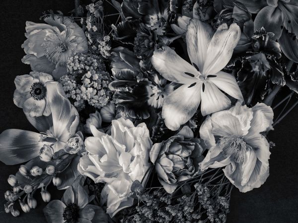Bukiet różnych kwiatów w różnych materiałach