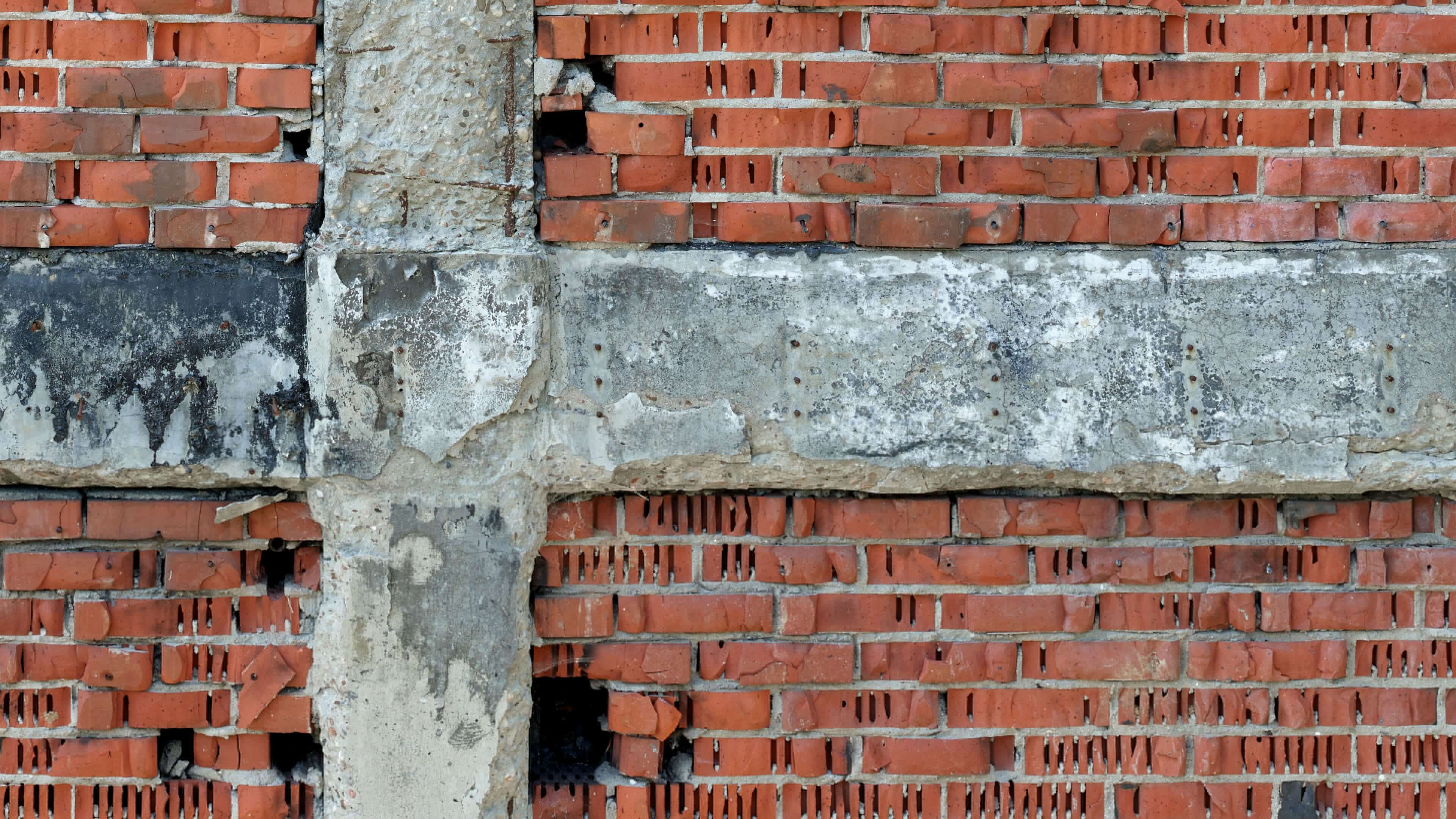 Cegły z pęknięciami na fototapecie. Umieść tę fototapetę w pomieszczeniu i stwórz niepowtarzalną atmosferę w swoim domu.