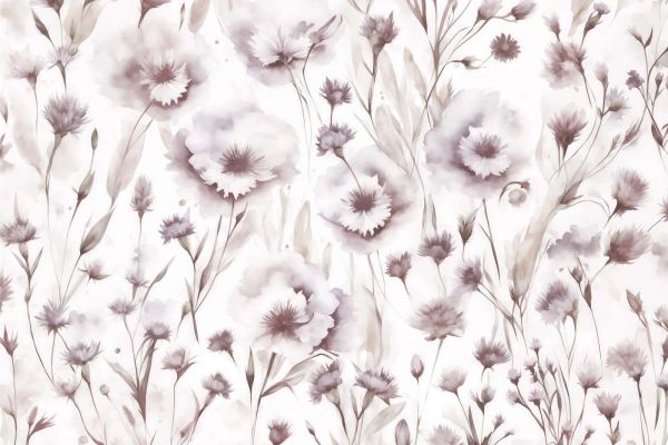 Wyrafinowany wzór maków i chabrów w delikatnych pudrowych odcieniach beżu, taupe i starych róż. Technika akwareli nadaje projektowi marzycielski, romantyczny wygląd. Subtelne przejścia kolorów i delikatne pociągnięcia pędzla tworzą spokojną i elegancką atmosferę w każdym pomieszczeniu.
