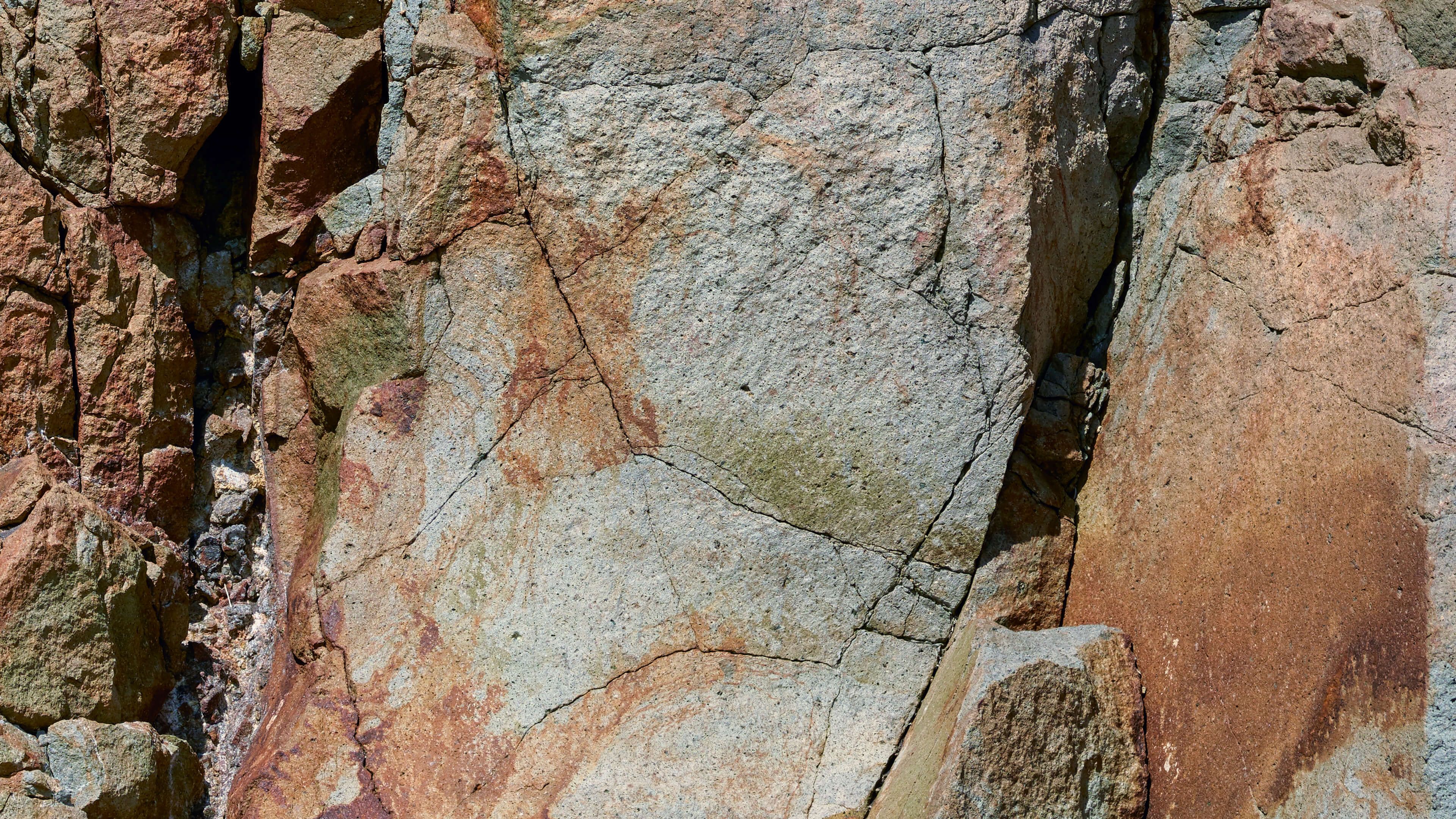 Szczegółowy, zbliżony obraz chropowatego klifu.
