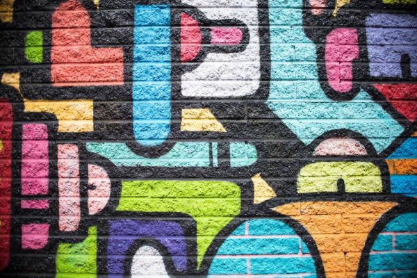 Ściana z graffiti w różnych materiałach