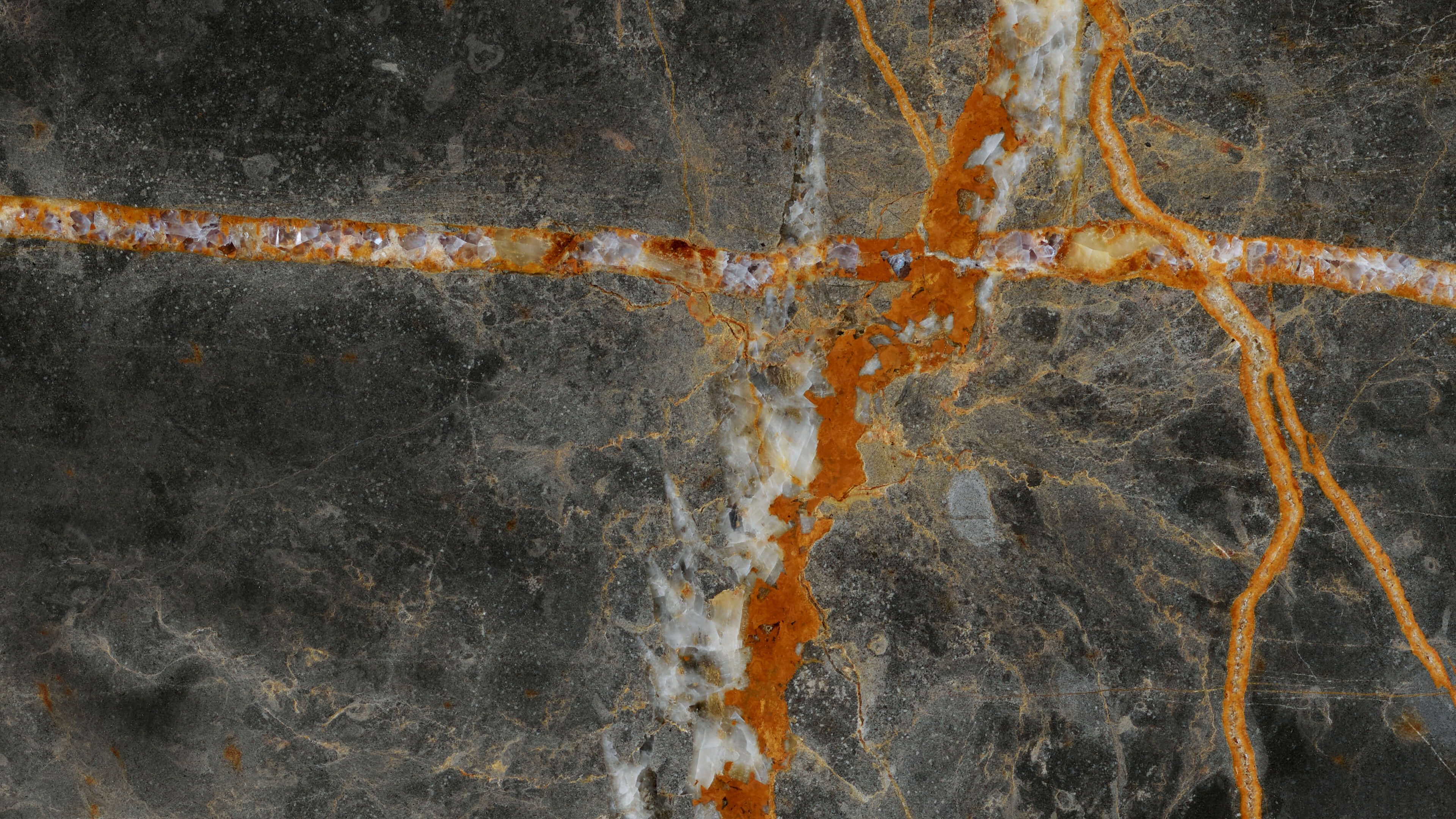 Ciemny marmur z odcieniami miedzi. Odcienie miedzi nadają tej fototapecie industrialny wygląd.