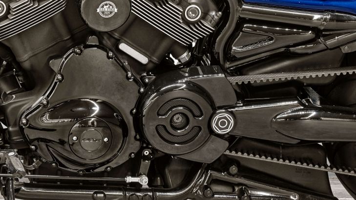 Wykonany na zamówienie motocykl z silnikiem V-twin. Uzupełnij swój dom tą fajną fototapetą.