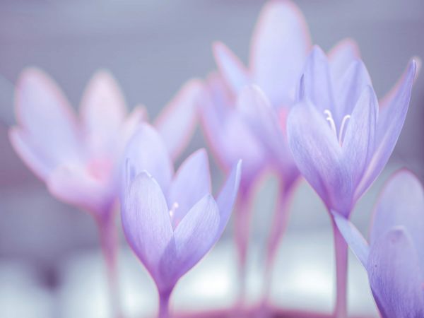 Fioletowe kwiaty krokusa w zbliżeniu. Połącz tę fototapetę w swoim domu, aby uzyskać jeszcze więcej kolorów.