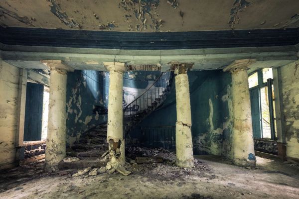 Jeszcze trochę i niegdyś wspaniały hol wejściowy tego zamku zawali się. Kolory i atmosfera są jednak czymś wyjątkowym.