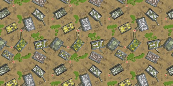 Fototapeta z wzorem wojskowych zielonych czołgów na piaszczystej równinie.
