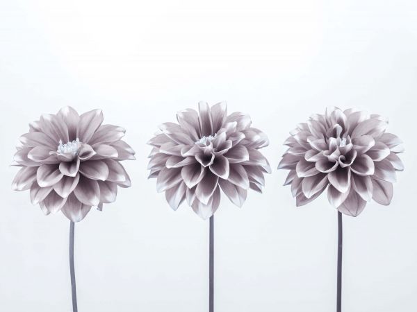 Trzy dalie w rzędzie w kolorach vintage. Połącz tę fototapetę w swoim domu, aby uzyskać jeszcze większą atmosferę.