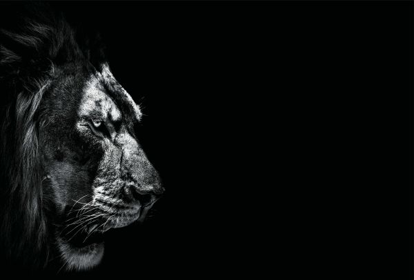 Ta tapeta "Dark Lion" natychmiast nada Twojemu wnętrzu więcej atmosfery. Czarno-biały efekt sprawi, że ta tapeta będzie przyciągać wzrok w Twoim domu.