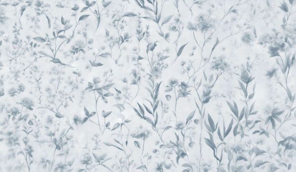 Odświeżający motyw kwiatowy w delikatnych odcieniach niebieskiego, z subtelnymi zielonymi i białymi akcentami. Lekko akwarelowe pociągnięcia nadają spokojną i serene atmosferę.