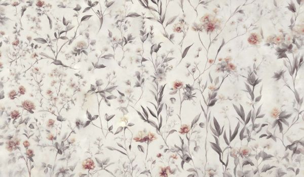 Uroczy kwiatowy wzór w delikatnych odcieniach różu z wyrafinowanymi akwarelowymi detalami. Gracje kwiatów i smukłe gałązki tworzą marzycielską, kobiecą atmosferę.