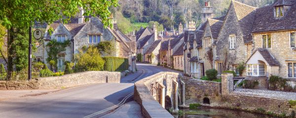 Domki z kamienia w Castle Combe. Połącz tę fototapetę na przykład w salonie.