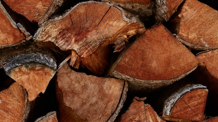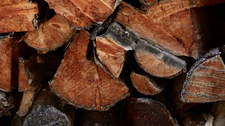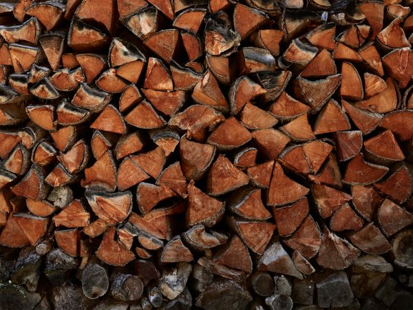 Piękny stos drewna z różnych rodzajów drewna. Połącz tę fototapetę z piecem na drewno, aby uzyskać jeszcze cieplejszą atmosferę w swoim domu.