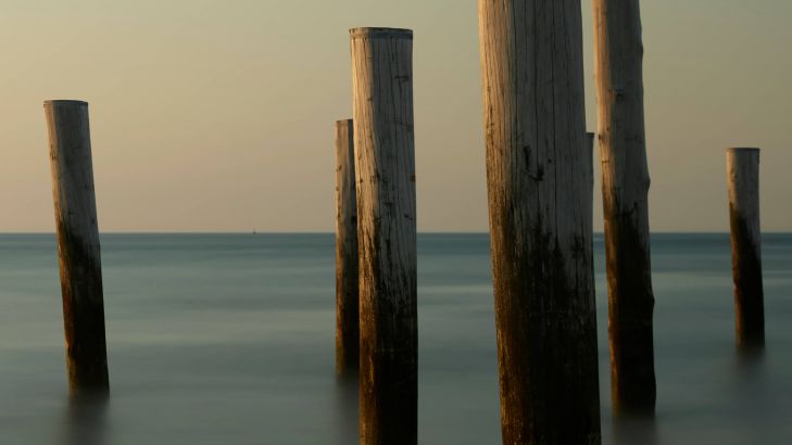 Fototapeta - Drewniane słupki plażowe