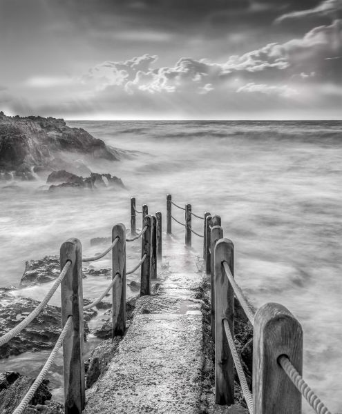 Drewniany mostek w mgle