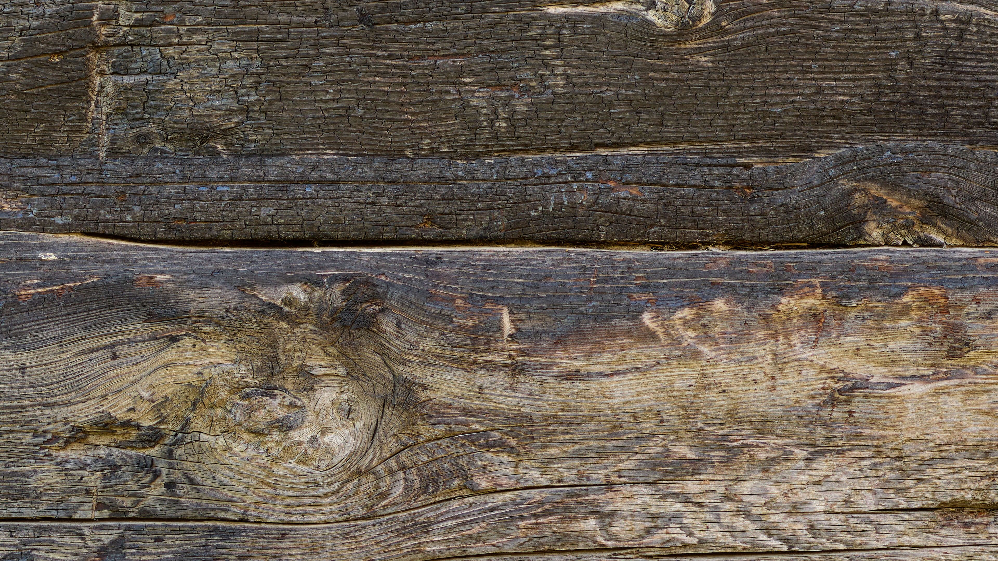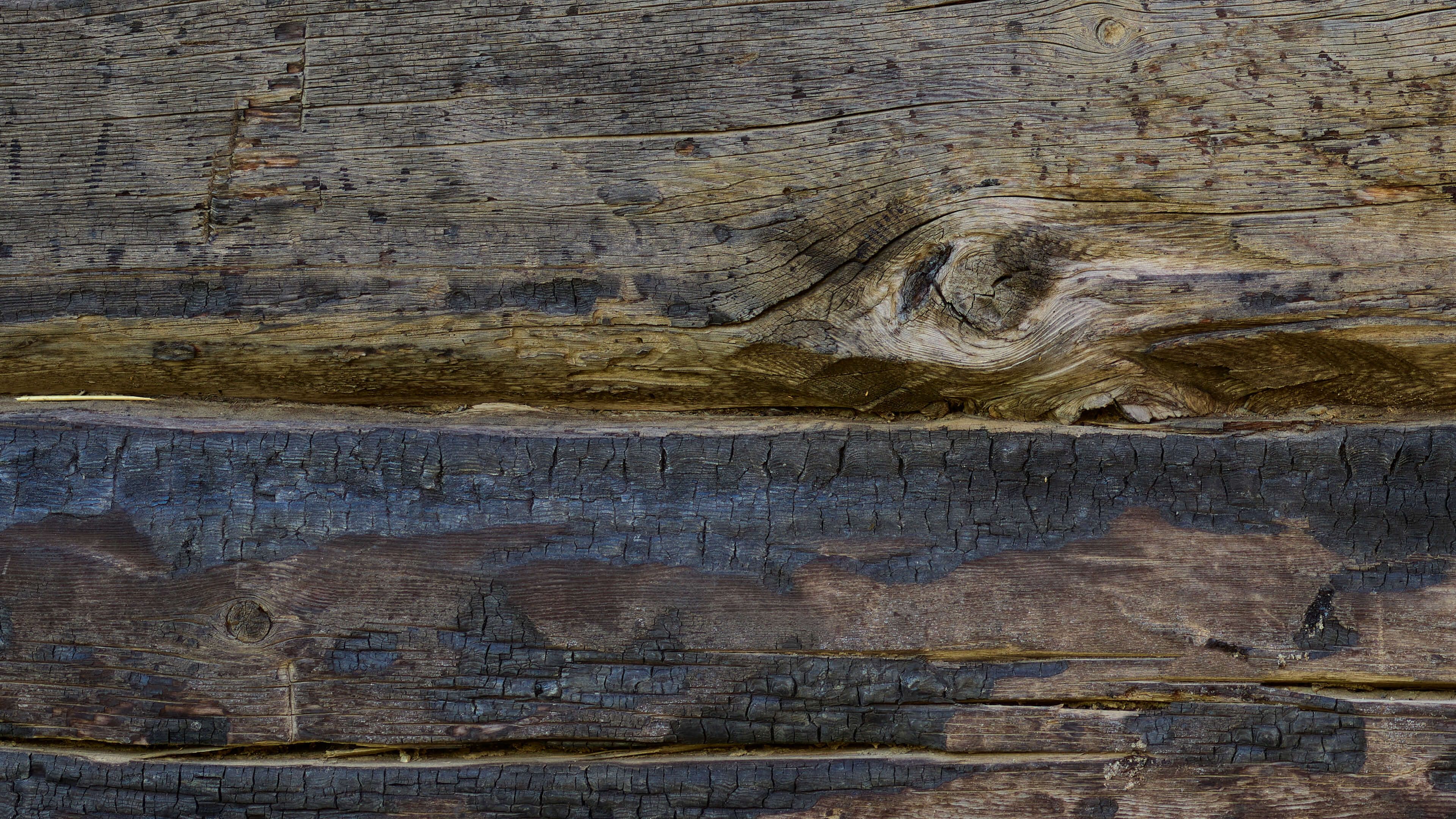 Deski przypalone z niebieskim odcieniem. Drewno ma niebieski odcień spowodowany pożarem.