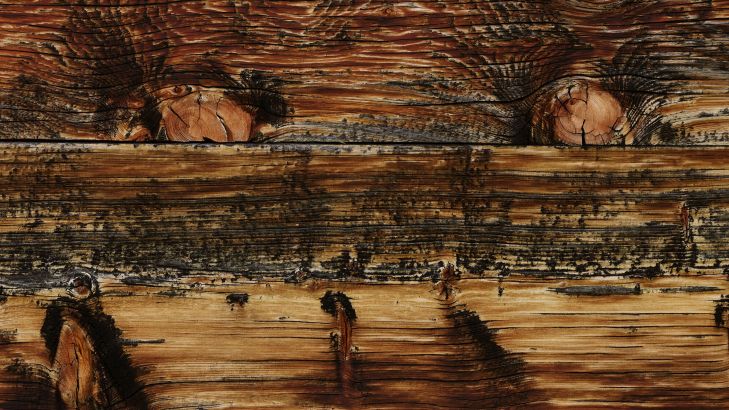 Piękne drewno płomieniowane z sękami. Ciepły brązowy kolor tej fototapety natychmiast doda atmosferę i ciepło do Twojego domu.