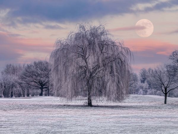 Drzewo pokryte mrozem w różnych materiałach