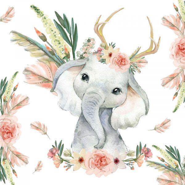 Dziecko słonia różowe kwiaty w różnych materiałach