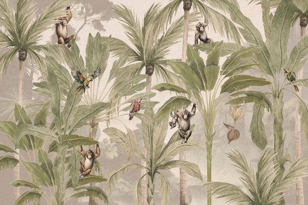 Przekształć każdy pokój w tętniącą życiem oazę naturalnego blasku dzięki naszej tapecie w dżungli. Ten czarujący design wprowadza bujne piękno dżungli do Twojego wnętrza, wraz z zabawnymi małpami i papugami śpiewającymi swoje melodie. Stwórz atmosferę odkrycia i zabawy, która sprawi, że każdy dzień będzie przygodą!