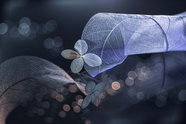 To ładne zbliżenie kwiatu i liści sprawia, że wygląda on jak obraz fantasy.