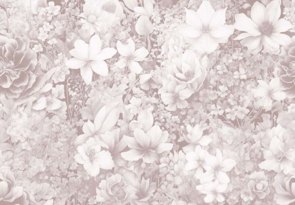 Uspokajający wzór kwiatowy z białymi i delikatnozielonymi kwiatami, w harmonii z świeżym zielonym liściem. Jasnozielone tło nadaje chłodny, naturalny wygląd. Subtelne odcienie w płatkach kwiatów tworzą świeży i orzeźwiający ogólny obraz.
