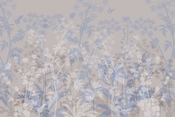 Este diseño da vida a una sutil representación de la naturaleza, con un patrón en capas de flores y plantas en tonos suaves y transparentes. Los elementos naturales se alternan con ligeros toques de mariposas, lo que confiere al conjunto un carácter aireado y divertido. Los colores tenues, como el azul pastel, el verde y los tonos arena, crean una atmósfera tranquila y acogedora, perfecta para agregar profundidad y una sensación de armonía natural a cualquier espacio.
