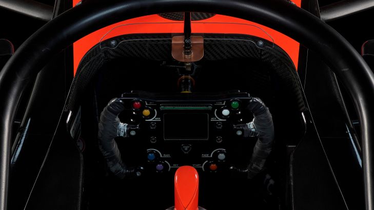 Poruszaj się za kierownicą samochodu Formuły 3 z tym fantastycznym widokiem z kokpitu. Wyraźnie widoczne są przyciski z tekstami, a także aureola i detale z karbonu. Unikalna fototapeta z czarnym tłem.
