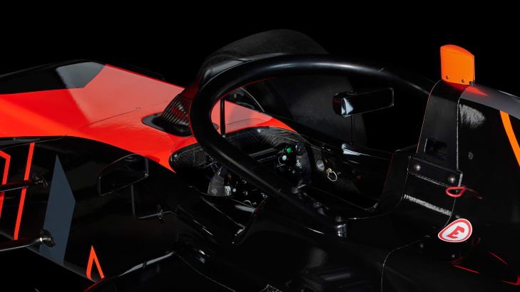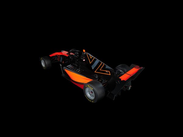 Szczegółowa czarna fototapeta samochodu wyścigowego Formuły 3, gdzie zarówno bok jak i tył są wyraźnie widoczne. Bezprecedensowe detale, takie jak kratki wentylacyjne i tylny spojler wykonane z węgla.