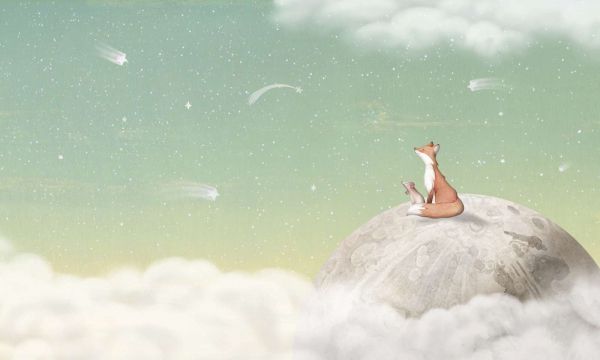Fototapeta - Fox on the Moon - Green
